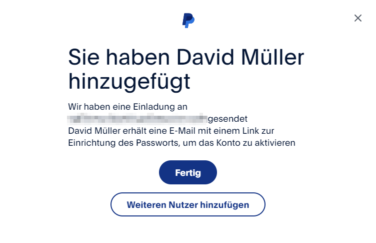 At first glance, PayPal has implemented the strong authentication in a common and fairly straightforward way: When adding a new user, even though I am already logged in, I am asked to enter a TAN that is send to me via SMS.1