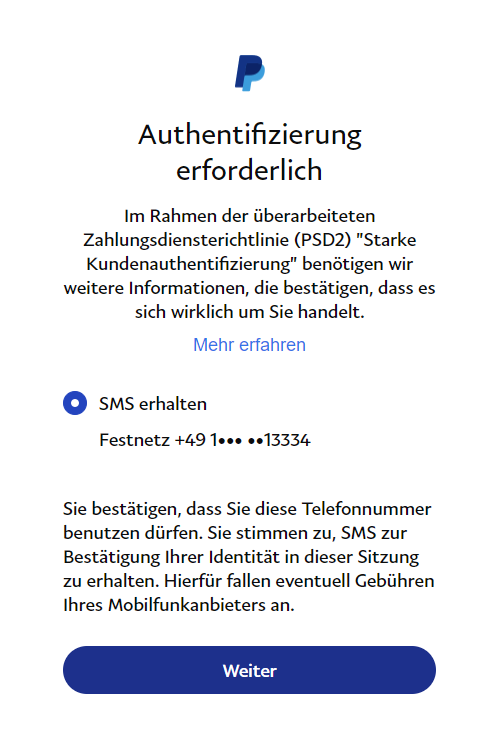 PayPal is asking for an SMS TAN.
